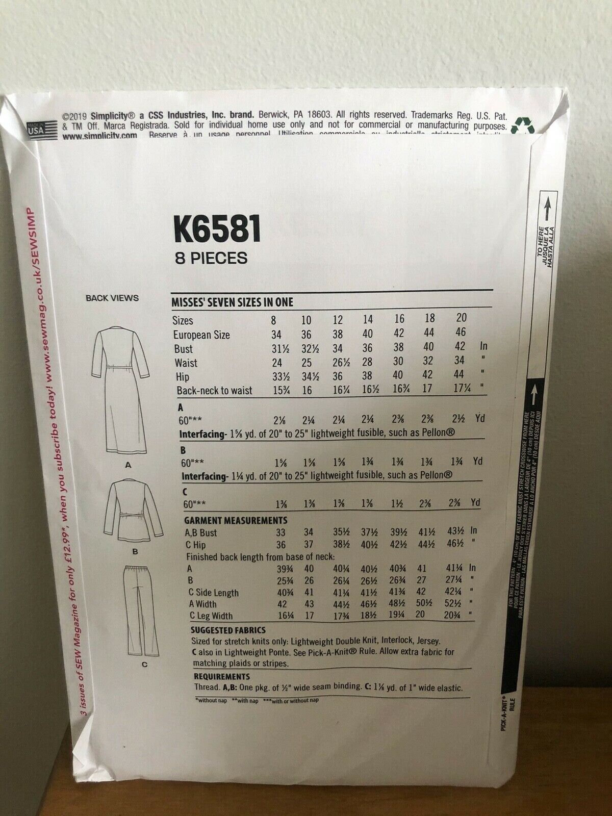 New Look Simplicity Easy 1 Hour Sewing Pattern K6524 K8337 Etsy